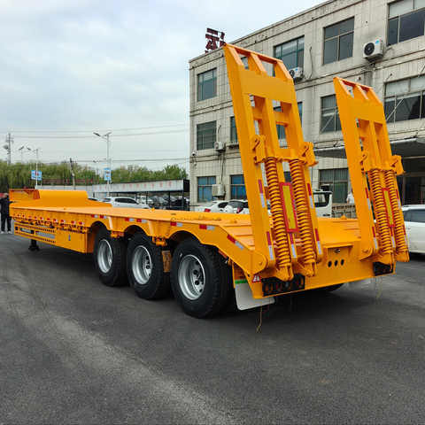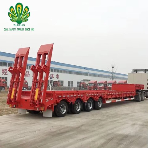 油圧ランプ70T鉄ローベッドセミトレーラー4軸ステップトレーラーHOWOブランドダブルリードはしごJOST E100ランディング