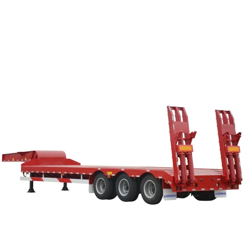 GHANAローカル工場30トン100トン容量油圧サスペンション3軸低ベッド半トレーラー重機輸送用
